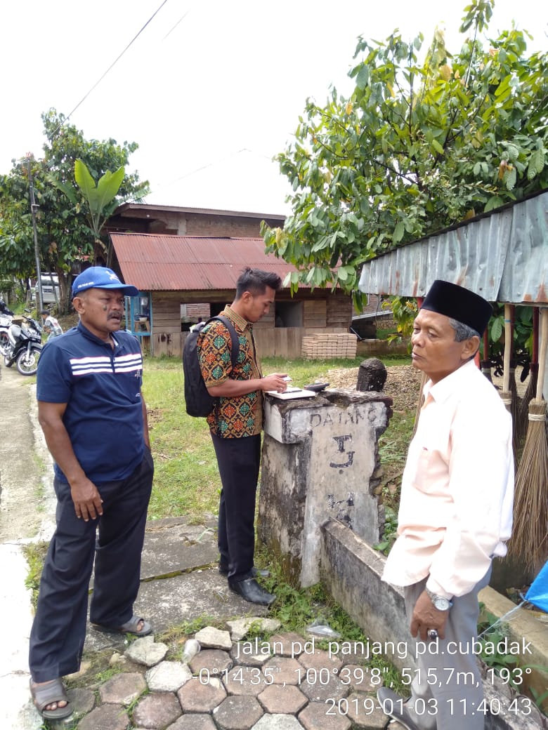 Pada Hari Kamis [3/1/19] Tim Turun kelapangan untuk menunjukkan batas batas berdasarkan Warih Nan Bajawek , Tutua Nan Badanga serta bukti pendukung lainnya untuk melakukan pengambilan Titik Koordinat menggunakan alat GPS -Map64S Garmin disetiap titik batas yang telah disepakati ketika Musyawarah.