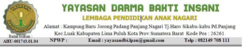 Sehubungan dengan adanya kekurangan tenaga pengajar di Yayasan Pendidikan Anak Nagari Darma Bakti Insani Nagari Tj Haro Sikabu-kabu Pd. Panjang, maka dengan ini kami sampaikan kepada masyarakat Nagari yang berminat untuk dapat mendaftarkan diri ke kantor wali nagari dengan persyaratan sebagai berikut: