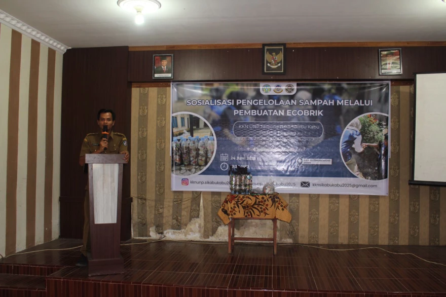 KKN-SITAPA | Selasa, 24 Juni 2025 - Sebagai bagian dari kegiatan pengabdian kepada masyarakat, mahasiswa kuliah kerja nyata (KKN) Universitas Negeri Padang (UNP) melaksanakan kegiatan sosialisasi bertema “Pengelolaan Sampah Melalui Pembuatan Ecobrick” di Nagari Tj Haro Sikabu-kabu Pd Panjang, Kec. Luak, Kab. Lima Puluh Kota.