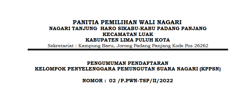 Pengumuman Hasil Seleksi Akhir Calon Staf Administrasi Pelayanan Nagari